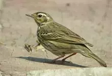 树鹨是小型鸣禽,外形和林鹨相似,体长15-16厘米。上体橄榄绿色具褐色纵纹,尤以头部较明显。眉纹乳白色或棕黄色,耳后有一白斑。下体灰白色,胸具黑褐色纵纹。野外停栖时,尾常上下摆动。…全部>>