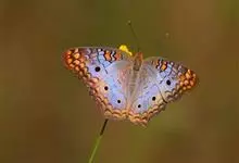 美眼蛱蝶为鳞翅目、蛱蝶科、眼蛱蝶属节肢动物。除西北外,全国各地均有分布,国外分布于日本及东南亚。幼虫以马鞭草科的过江藤、车前草科的车前草等为食。全部>>