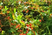 火棘 H. L. Li)是蔷薇科火棘属常绿灌木,老枝呈暗褐色;叶片呈倒卵形,边缘有钝锯齿,齿尖向内弯,两面皆无毛;叶柄短,无毛或嫩时有柔毛;花序是复伞房状,花瓣呈白色近圆形;果球近圆形,…全部>>
