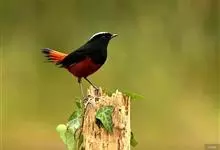 橙胸咬鹃:全长约28厘米。雄鸟头、颈橄榄绿色,上体及中央尾羽栗色;中央尾羽具黑色端,其外侧的2对尾羽黑色,最外3对尾羽基部黑色具白端;翼覆羽有密的黑、白相间横,飞羽黑褐;颏、喉橄榄色,胸橄榄黄,…全部>>