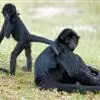 蛛猴属:共有7种。头体长约35-66厘米。头又圆又小,四肢细长,手没有拇指。毛茸茸的尾巴约有60-92厘米长,很会抓住树枝,其功能有点像手。尾巴比身体还长,缠绕性极强。能直立行走。…全部>>