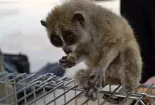 蜂猴为灵长目蜂猴属下的一种猴子,有9个亚种。体型较小而行动迟缓,是较低等的猴类,体长28~38厘米。两只小耳朵隐藏于毛茸茸的圆脑袋中;眼圆而大。四肢短粗而等长,第二个脚趾还保留着钩爪,尾短而隐于毛丛…全部>>