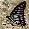 青带凤蝶Graphium sarpedon ,又名青凤蝶,是最普遍的中型凤蝶,飞行速度很快。青带凤蝶的翅膀中央有许多浅蓝色的斑点,很整齐地排列成一条直线。这些斑点由上而下逐渐变大,就像一条青色的带子。全部>>