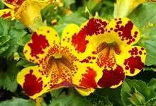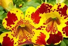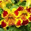 猴面花是玄参科,沟酸浆属多年生草本植物,常作1-2年生栽培。高可达40厘米,茎粗壮,中空。中交互对生,宽卵圆形。对生在叶腋内,漏斗状,黄色,通常有紫红色斑块或斑点。5-10月开花。全部>>