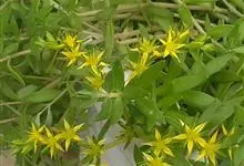 垂盆草别名石头菜、狗牙瓣、豆瓣菜等,为景天科景天属的多年生草本植物。不育枝及花茎细,匍匐而节上生根,直到花序之下;3叶轮生,叶倒披针形至长圆形,先端近急尖,基部急狭,有距;聚伞花序,花无梗,…全部>>