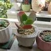 唐印为景天科伽蓝菜属的多年生肉质草本植物。植株中型,株高50厘米,宽20厘米,多分枝;叶片肉质,对生,卵形,全缘,先端钝圆,叶片淡绿色至灰绿色,表面被有厚厚的白粉,光照充足时,叶缘呈红色;圆锥花序,…全部>>