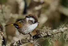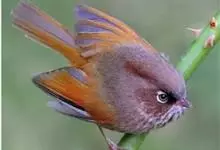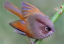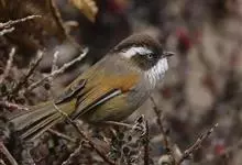 棕头雀鹛为鸦雀科,褐鹛属小型鸟类,体长10-13厘米。头顶栗褐色具黑色侧冠纹。上体茶黄色,飞羽外侧表面灰白色,内侧表面红棕色,内外二色之间夹有黑色。颏、喉白色具不明显的暗色纵纹,胸沾葡萄灰色,…全部>>