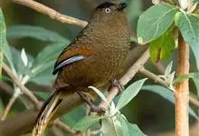 蓝翅噪鹛:噪鹛科、彩翼噪鹛属动物。中型鸟类,体长22-25厘米。上体棕橄榄褐色密被黑色鳞状斑,眼蓝白色,眼上有一长而宽阔的黑色眉纹,从眼先直到颈侧。下体棕褐色被黑色鳞状斑;尾上和尾上覆羽栗色,…全部>>
