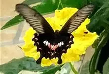 玉斑凤蝶Papilio helenus 别名白纹凤蝶,是凤蝶科凤蝶属美凤蝶亚属大型种类。雌雄同型;体翅皆黑色,后翅正面中室外有3个并列的白色斑,亚外缘有1列模糊的新月形红色斑,…全部>>