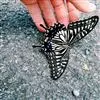 玉带凤蝶是鳞翅目凤蝶科凤蝶属昆虫,又称白带凤蝶、黑凤蝶、缟凤蝶、梁山伯凤蝶。雄蝶前翅外缘、后翅中央有7个大型黄白斑,排列成带。老熟幼虫深绿色,头部黄褐色,后胸前缘有1条齿状的黑色线状横纹,…全部>>