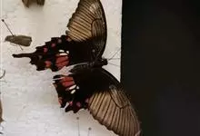 玉斑凤蝶Papilio helenus 别名白纹凤蝶,是凤蝶科凤蝶属美凤蝶亚属大型种类。雌雄同型;体翅皆黑色,后翅正面中室外有3个并列的白色斑,亚外缘有1列模糊的新月形红色斑,…全部>>