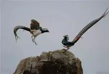 雉鸡:鸟纲、雉科、雉属的一种走禽,共有30个亚种。体形较家鸡略小,但尾巴却长得多。雄鸟和雌鸟羽色不同,雄鸟羽色华丽,多具金属反光,头顶两侧各具有一束能耸立起而羽端呈方形的耳羽簇,…全部>>