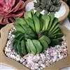 京之华锦是独尾草科瓦苇属的一种植物。也叫凝脂菊,为京之华的斑锦变异品种,植株群生,扁棒状三角形肉质叶排成莲座状,叶表平展,背部隆起,全叶有黄色或白色纵向缟纹,少数叶整片都呈黄色或白色。株型小巧,…全部>>