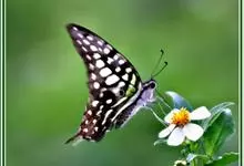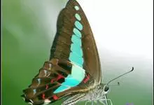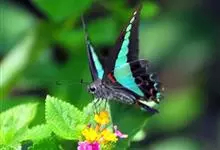 青带凤蝶Graphium sarpedon ,又名青凤蝶,是最普遍的中型凤蝶,飞行速度很快。青带凤蝶的翅膀中央有许多浅蓝色的斑点,很整齐地排列成一条直线。这些斑点由上而下逐渐变大,就像一条青色的带子。全部>>