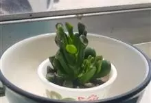 筒叶花月,是景天科青锁龙属的多年生草本植物。植株多分株,灌木状,茎较粗壮,圆柱形,表皮灰褐色;叶片肉质,互生,呈圆筒状,簇生于茎或分枝顶端,叶端呈斜截形,截面为椭圆形;花呈星状,淡白色;花期秋季。…全部>>