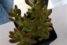 玉米石是景天科、景天属植物。多年生草本多浆植物。植株低矮丛生,多分枝。叶膨大成圆筒形、卵形或近小球形,互生至簇生,长0.6-1.2厘米,宽0.4-0.7厘米,叶端钝圆,亮绿色,肉质,硝带红晕,…全部>>