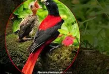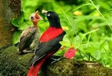 朱鹂:中等鸟类,体长23-28厘米。雄鸟绛紫红色,头、上胸及翼黑色。雌鸟上背及背部深灰色,尾覆羽及尾绛紫红色,腹部及下胸白而密布黑色纵纹。与鹊色鹂幼鸟的区别在上背灰色较深,下体白色较少且纵纹较粗。…全部>>