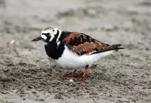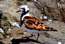 翻石鹬:体重82-135克,体长180-240毫米。体型高矮兼称,看起来十分的滑稽。它们在繁殖季时体色非常醒目,由栗色、白色和黑色交杂而成,嘴短,黑色,脚橙红色。到了冬天,翻石鹬身上的栗红色就会消失,…全部>>