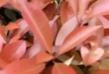 红叶石楠 是蔷薇科,石楠属杂交种,为常绿小乔木或灌木,乔木高可达5米、灌木高可达2米。叶片革质,长圆形至倒卵状、披针形,叶端渐尖,叶基楔形,叶缘有带腺的锯齿,花多而密,复伞房花序,花白色,梨果黄红色,…全部>>
