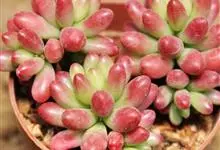 虹之玉是景天科景天属的多肉植物,多年生肉质草本植物。生长速度较快,叶片肉质,呈长椭圆形,约1厘米长,互生。花黄色,星形,秋冬季节或强光照下,叶片部分或全部转为鲜红色。生长适温10~28℃,…全部>>