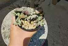 玉米石是景天科、景天属植物。多年生草本多浆植物。植株低矮丛生,多分枝。叶膨大成圆筒形、卵形或近小球形,互生至簇生,长0.6-1.2厘米,宽0.4-0.7厘米,叶端钝圆,亮绿色,肉质,硝带红晕,…全部>>