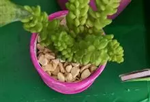 玉缀,别名翡翠景天景天科景天属常绿或半常绿多肉植物。植物匍匐下垂,翠绿色。叶小,多汁,纺锤形,、密密麻麻,似松鼠尾巴。花小,深玫瑰色,春季开放。全部>>