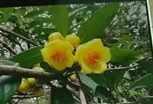 金花茶 Sealy)是山茶科山茶属植物。常绿灌木。叶革质,长圆形或披针形,基部楔形,上面深绿色,发亮,无毛,下面浅绿色,无毛,有黑腺点,中脉及侧脉7对,在上面陷下,在下面突起,边缘有细锯齿;萼片5,…全部>>
