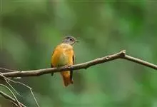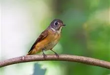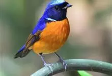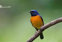 棕腹大仙鹟:体重24-28克,体长15-17厘米,是一种小型的色彩亮丽的鹟。雄鸟上体深蓝,下体棕色,脸黑,额、颈侧小块斑、翼角及腰部亮丽闪辉蓝色。与棕腹仙鹟易混淆,区别在色彩较暗。雌鸟灰褐,…全部>>