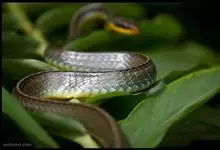 红脖颈槽蛇:游蛇科、颈槽蛇属的爬行动物。体型中等大小,全长约77-95厘米。头背草绿色,上唇鳞色稍浅,部分鳞沟黑色;头腹面污白色。躯干及尾背面草绿色,颈区及体前段鳞片间皮肤腥红色;躯干及尾腹面黄白色。…全部>>