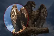 金雕:属于鹰科、雕属的猛禽。体长76-102厘米,翼展达2.3米,体重2-6.5千克。雌雄同色。未成年时,头、颈黄棕色;两翼飞羽除了最外侧三枚外基部均缀有白色,其余身体部分暗褐色;羽尾灰白色,…全部>>
