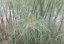纸莎草是莎草科、莎草属的植物,具有粗壮的根状茎,高达2-3米,茎秆簇生,粗壮,直立,钝三棱形。叶退化呈鞘状,茎秆顶端着生总苞片,呈伞状簇生,总苞片叶状,披针形,顶生花序伞梗极多,细长下垂。瘦果灰褐色,…全部>>
