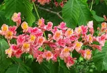 红花七叶树是七叶树科七叶树属植物,落叶乔木。树高可达15-20米,树冠伞形,干形挺拔。小枝粗壮,栗褐色,光滑无毛。掌状复叶小叶通常5枚,成树5-7枚,无柄,叶片倒卵形至长椭圆形,边缘有不规则重锯齿。…全部>>