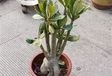沙漠玫瑰 Roem. & Schult.),别名天宝花、阿拉伯沙漠玫瑰、索马里沙漠玫瑰等,为夹竹桃科沙漠玫瑰属的一种多肉灌木或小乔木植物。其树干肿胀,茎干光滑,白绿色或灰白色,…全部>>