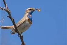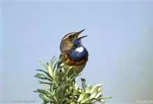 蓝点颏亦称“蓝喉歌鸲”,通称蓝靛颏儿。身体大小和麻雀相似,体长12-13厘米,体重17-18克。头部、上体主要为土褐色。眉纹白色。尾羽黑褐色,基部栗红色。颏部、喉部辉蓝色,下面有黑色横纹。下体白色。…全部>>