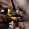 黄颈拟蜡嘴雀:小型鸟类,体长20-22厘米。嘴粗大,黑色。雄鸟整个头、颈、颏、喉和上胸辉黑色,两翅和尾亦为黑色,其余上体橙黄色,下体鲜黄色。雌鸟头、颈、颏、喉和上胸中央灰色或暗灰色,…全部>>