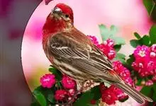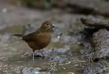 红眉朱雀:体长15厘米,是一种中等体型的朱雀。上体褐色斑驳,眉纹、脸颊、胸及腰淡紫粉,臀近白。雌鸟无粉色,但具明显的皮黄色眉纹。雄雌两性均甚似体型较小的曙红朱雀,但嘴较粗厚且尾的比例较长。…全部>>