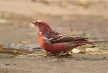 酒红朱雀小型鸟类,体长13~15厘米。雄鸟通体深红色,头部深朱红或棕红色,下背和腰玫瑰红色,眉纹粉红色而具丝绢光泽。两翅和尾黑褐或灰褐色、具暗红色狭缘,内侧两枚三级飞羽具淡粉红色先端。…全部>>