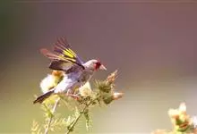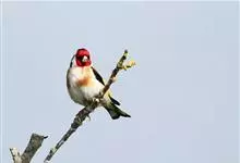 红额金翅雀:共有14个亚种。小型鸟类,体长12-14厘米。额、脸颊和颏朱红色,眼先和眼周黑色,在淡色的头部极为醒目。上体灰褐或乌褐色,尾上覆羽白色,两翅和尾黑色,翅上有黄色斑。下体喉、胸灰褐或乌褐色…全部>>