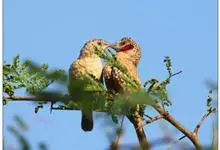 红梅花雀小型鸟类,体长9-10厘米。雄鸟通体朱红色,背、肩、胸等满布白色小斑点,两翅和尾黑褐色均具白色端斑,嘴红色,脚蜡黄色。雌鸟上体淡褐色或赭褐色,翅上中覆羽、大覆羽和内侧飞羽末端具白色斑点,…全部>>