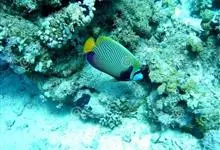 眼斑双锯鱼,背鳍硬棘被橘黄色斑块分割为5-6枚,第4枚最长,约为头长的2.1-2.9倍。胸鳍、臀鳍、背鳍、尾鳍被橘黄色斑块分割部分都具黑缘,黑缘之外还有一透明外缘。体侧3块白斑明显可见,形状不规则,…全部>>