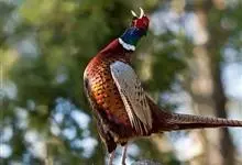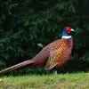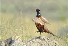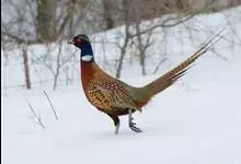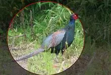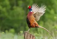 环颈雉是雉科、雉属的一种走禽,共有30个亚种。体重900-1050克,体长53-89厘米。体型较家鸡略小,但尾巴却长得多。雄鸟和雌鸟羽色不同,雄鸟羽色华丽,多具金属反光,…全部>>