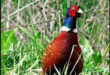 雉鸡:鸟纲、雉科、雉属的一种走禽,共有30个亚种。体形较家鸡略小,但尾巴却长得多。雄鸟和雌鸟羽色不同,雄鸟羽色华丽,多具金属反光,头顶两侧各具有一束能耸立起而羽端呈方形的耳羽簇,…全部>>