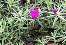 大花马齿苋:一年生草本,高10-30厘米。茎平卧或斜升,紫红色,多分枝,节上丛生毛。叶密集枝端,较下的叶不规则互生,叶片细圆柱形,无毛。花单生或数朵簇生枝端,直径2.5-4厘米,…全部>>