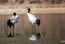 黑颈鹤:是鹤科、鹤属的大型涉禽,体长110-120厘米,体重4-6千克。颈、脚甚长,通体羽毛灰白色,头部、前颈及飞羽黑色,眼先和头顶前方裸露的皮肤呈暗红色,尾羽褐黑色。头顶,三级飞羽的羽片分散,…全部>>