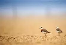 金眶鸻是一种小型鸻科鸟,体重28-48克,体长153-183毫米。上体沙褐色,下体白色。有明显的白色领圈,其下有明显的黑色领圈,眼后白斑向后延伸至头顶相连。羽毛的颜色为灰褐色,常随季节和年龄而变化。…全部>>