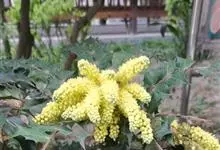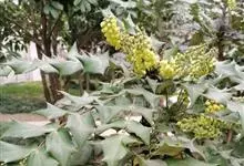 十大功劳 Fedde),小檗科十大功劳属常绿灌木植物。叶子较大且较多,呈椭圆形,绿色,表面光滑无毛,叶柄较长;花朵较小,呈多边形,黄色,花瓣对称分布,表面有绒毛;果实呈圆形,褐色,…全部>>