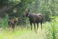 驼鹿:鹿科、驼鹿属动物。体长200-260厘米,肩高160-240厘米,体重400-700千克。肩部特别高耸,则又像骆驼背部的驼峰,因此得名。以雄性的掌形鹿角为特征。驼鹿共有8个亚种,…全部>>