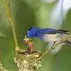 黑枕王鹟小型鸟类,体长14~16厘米。雄鸟除腹和尾下覆羽白色外,通体包括两翅和尾表面几全为青蓝色,头顶天蓝色,额基黑色,枕有一黑色块斑,胸具一半月形黑色胸带。雌鸟头颈暗青蓝色,背灰蓝褐色,枕无黑斑,…全部>>