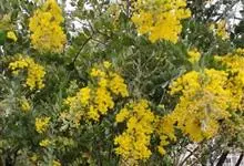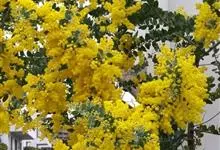 银叶金合欢,又称为为珍珠相思、真珠相思,是豆科金合欢属一种速生的小乔木,可长到6米高,树冠可伸展到3米宽,树型美观俊挺。冬季和早春盛开朵朵芬芳的金黄色球状花。有趣的是,它幼年时叶片为羽状复叶,而成年…全部>>