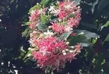使君子 Jongkind)是使君子科、使君子属攀援灌木,叶对生,椭圆形,两面均被灰白色柔毛。穗状花序,倒挂下垂。花期夏秋。果有五棱,熟时黑色,种子白色。分布于印度、缅甸、菲律宾和中国。喜温润,深根性,…全部>>
